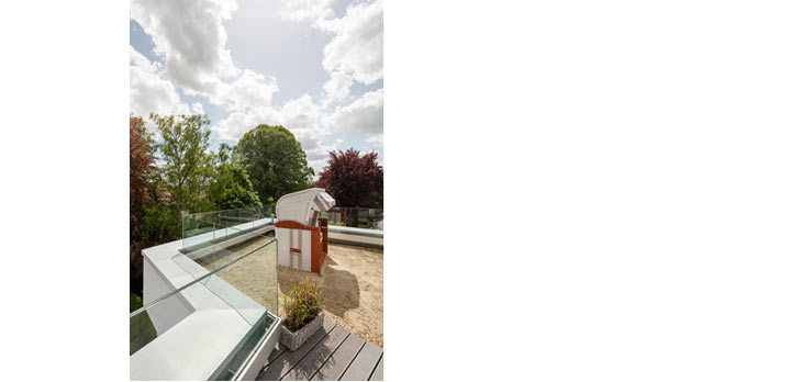 „Von der obersten Dachterrasse genießen wir aus unserem Strandkorb, mit den Füßen im weißen Sand, den Blick über den Rhein.“