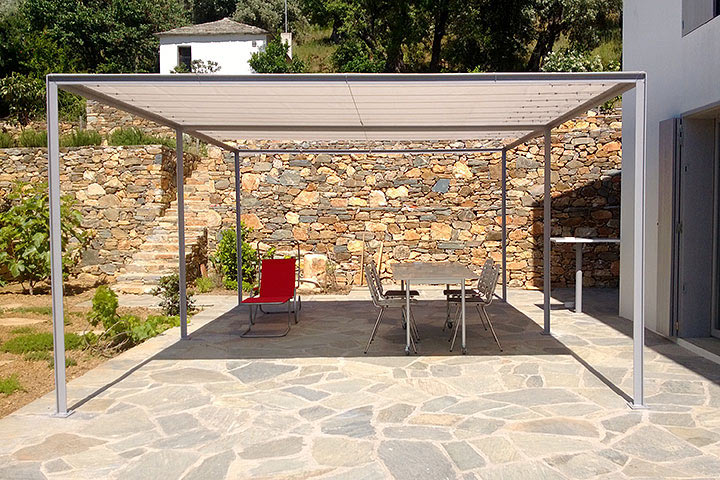 Für die äußere Gestaltung gelang die modernistische Interpretation der griechischen Vorgaben. Regelkonforme Gestaltung von Dachform und Dacheindeckung. Aufbrechen der Fassade mit raumhohen Fensterelementen auf moderne Art. Innen moderner, offener Grundriss. Die besondere Lage des Grundstücks bestimmte die Entwurfsüberlegungen. Blickbeziehungen von innen nach außen. Die Einbettung in eine Terrassenanlage aus Bruchstein. Die Öffnung des faszinierenden Meerblickes aus vielen Perspektiven.