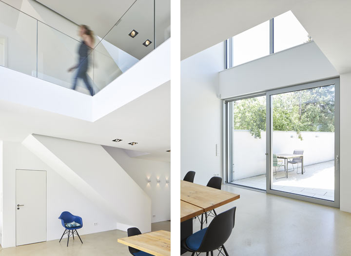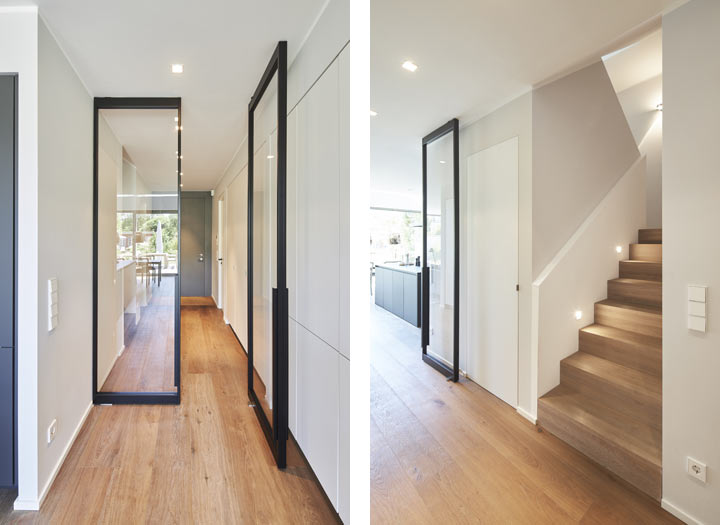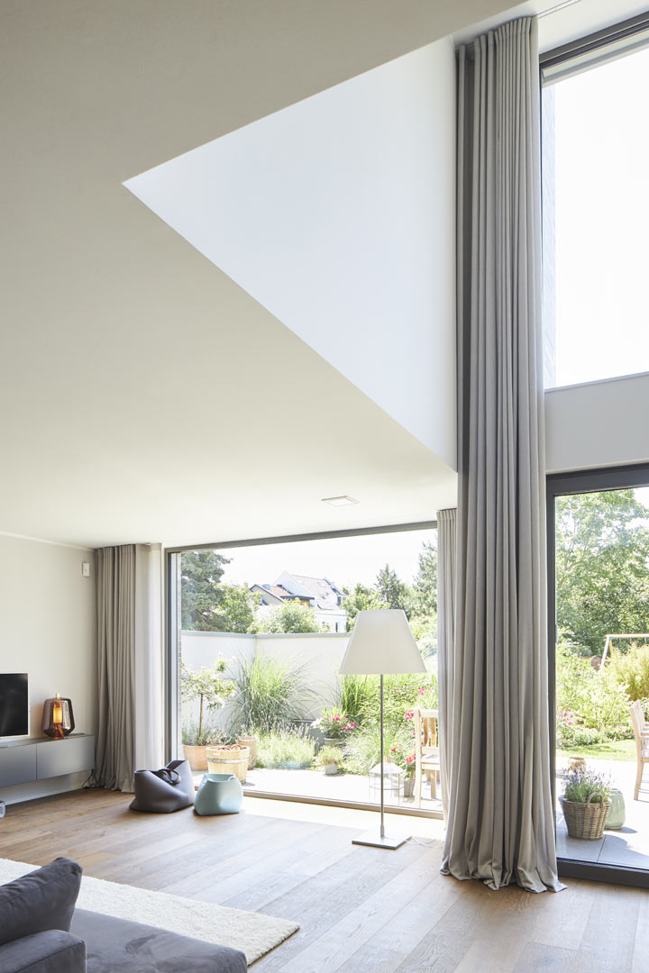 das Thema Licht und Raum im Fokus hatten. Durch die 2- geschossigen Essbereiche mit Galerie in den Obergeschossen fällt das Licht, und vor allem Sonne, bis tief in die