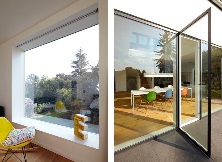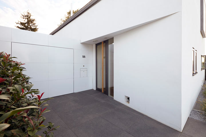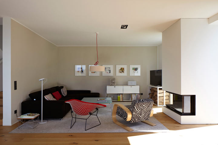 Dies widersprach eigentlich den Vorstellungen eines modernen, offenen, lichtdurchfluteten Wohnhauses mit offenem Raumgefüge und hohen Decken im EG, Galerie mit zentralem Luftraum über dem Esstisch, klarer Linienführung und bündigen Oberflächen in der Fassade und in der Ausgestaltung des Baukörpers.