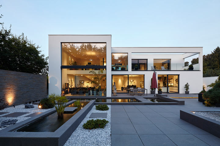 im Dialog mit dem Ort und dem angrenzenden Wald“ so formulierte das Bauherrenehepaar seinen Wunsch für das Projekt bei Dormagen, gelegen zwischen Köln und Düsseldorf.